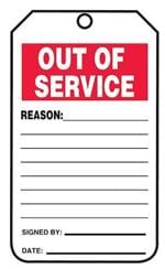 标签和工业警告标志 15MIL TAG OUT OF SERVICE PK/5 PDF数据手册